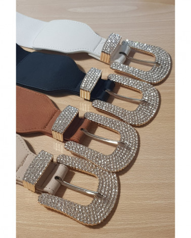 Nuevo cinturon elastico con hebilla de brillo esta disponible en cuatro colores.