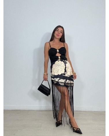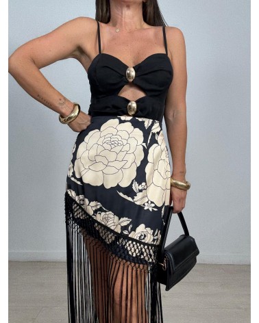 FALDA SATÉN ASIMÉTRICA FLOR FLECOS