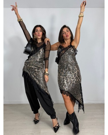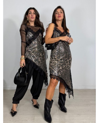 VESTIDO PICO LENTEJUELAS LEOPARDO