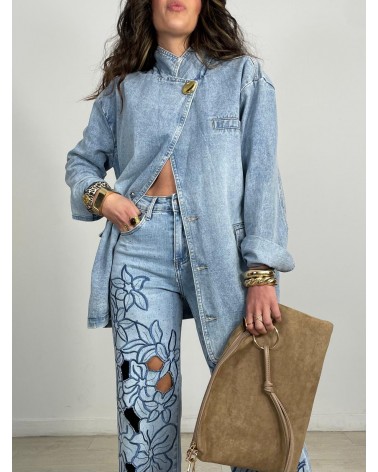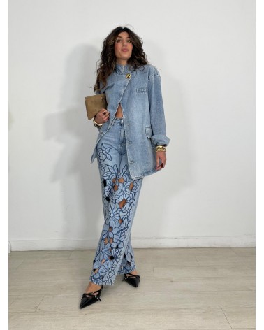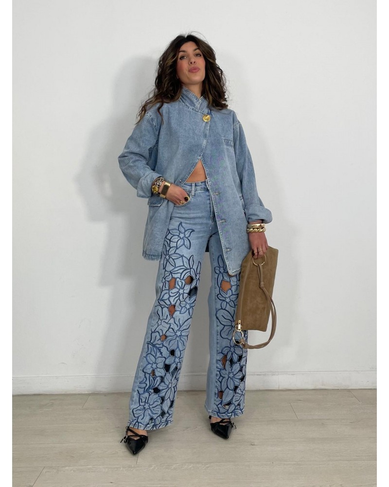 JEANS FLORAL STRASS CUT OUT