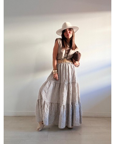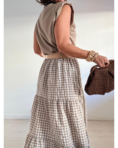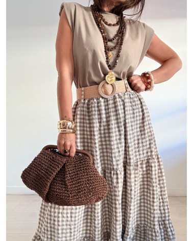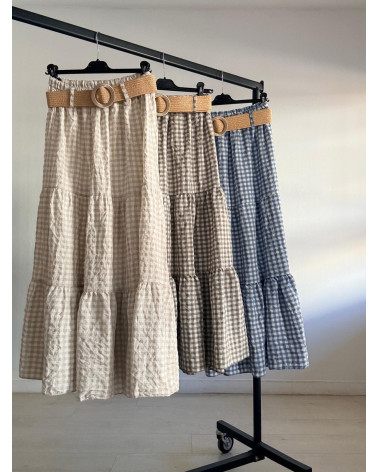FALDA LARGA VICHY + CINTURÓN RAFIA
