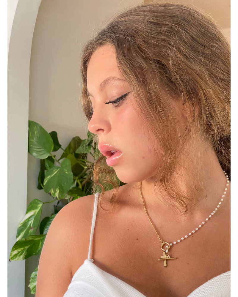 NUEVO COLGANTE DE PERLAS PEQUEÑAS CON CRUZ DORADA