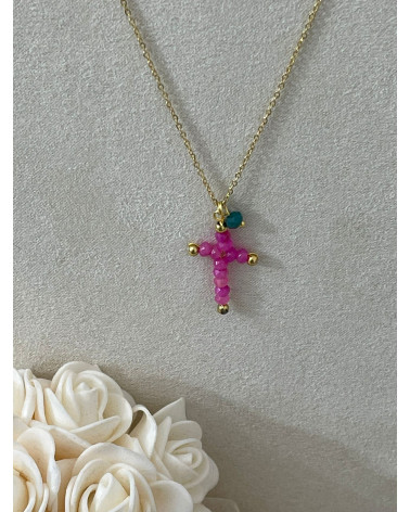 NUECO COLGANTE EN COLOR ORO CON CRUZ ROSA