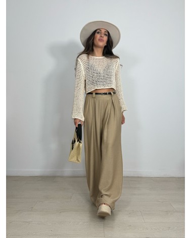 BLUSA MANGA LARGA CROCHET BEIGE