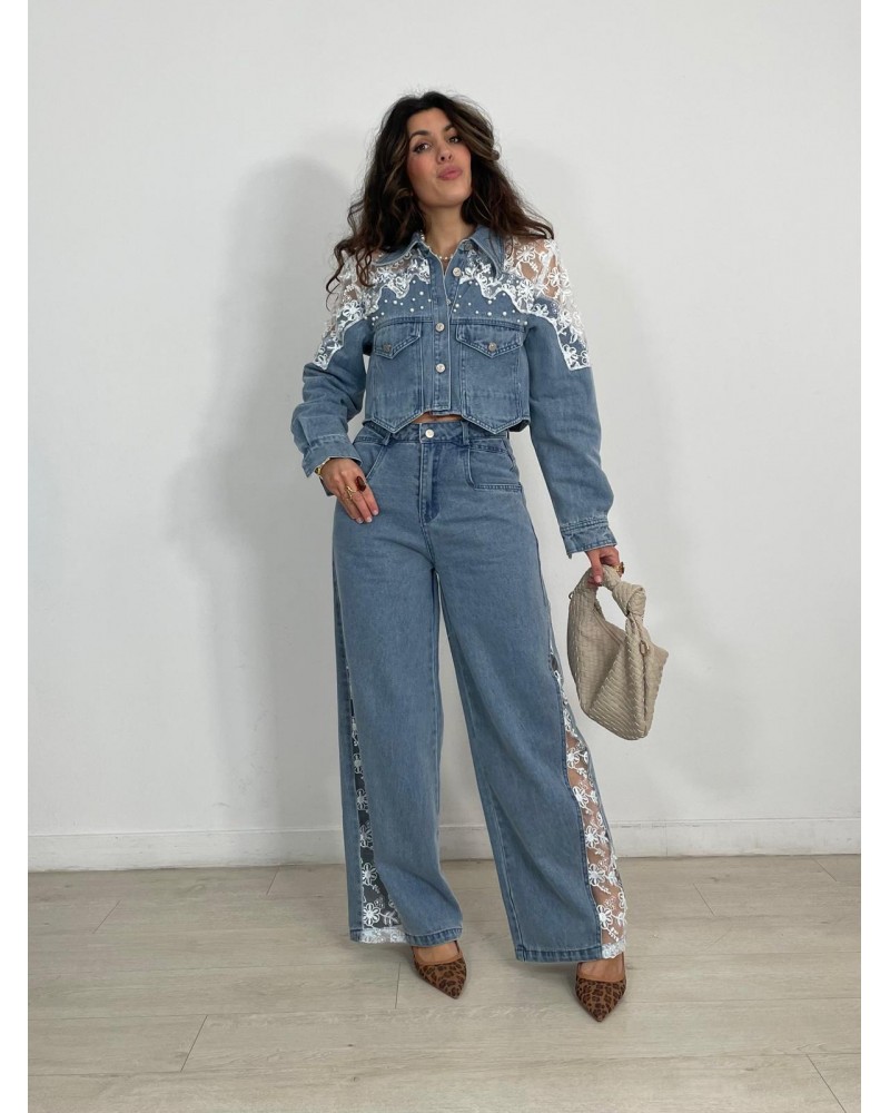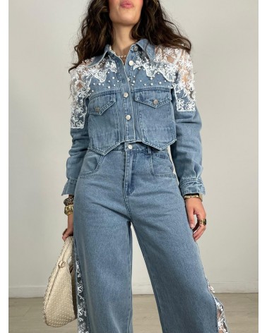 CONJUNTO VAQUERO ENCAJE Y PERLAS